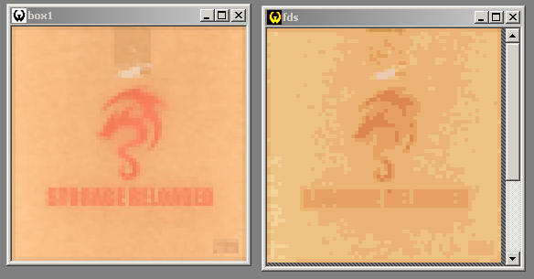 the one of the left is the texture resized to 64x64 and placed on a 64x64 box