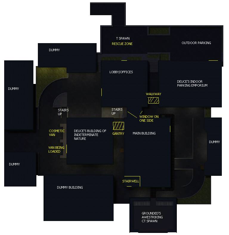 I haven't looked at the map yet but I did say that it might be difficult for you to visualise what I was thinking of. The sniper area in the parking lot need to be isolated i.e. it can't be a window directly into the parking area. I'll just have to look at your map and make any necessary changes in the full map.